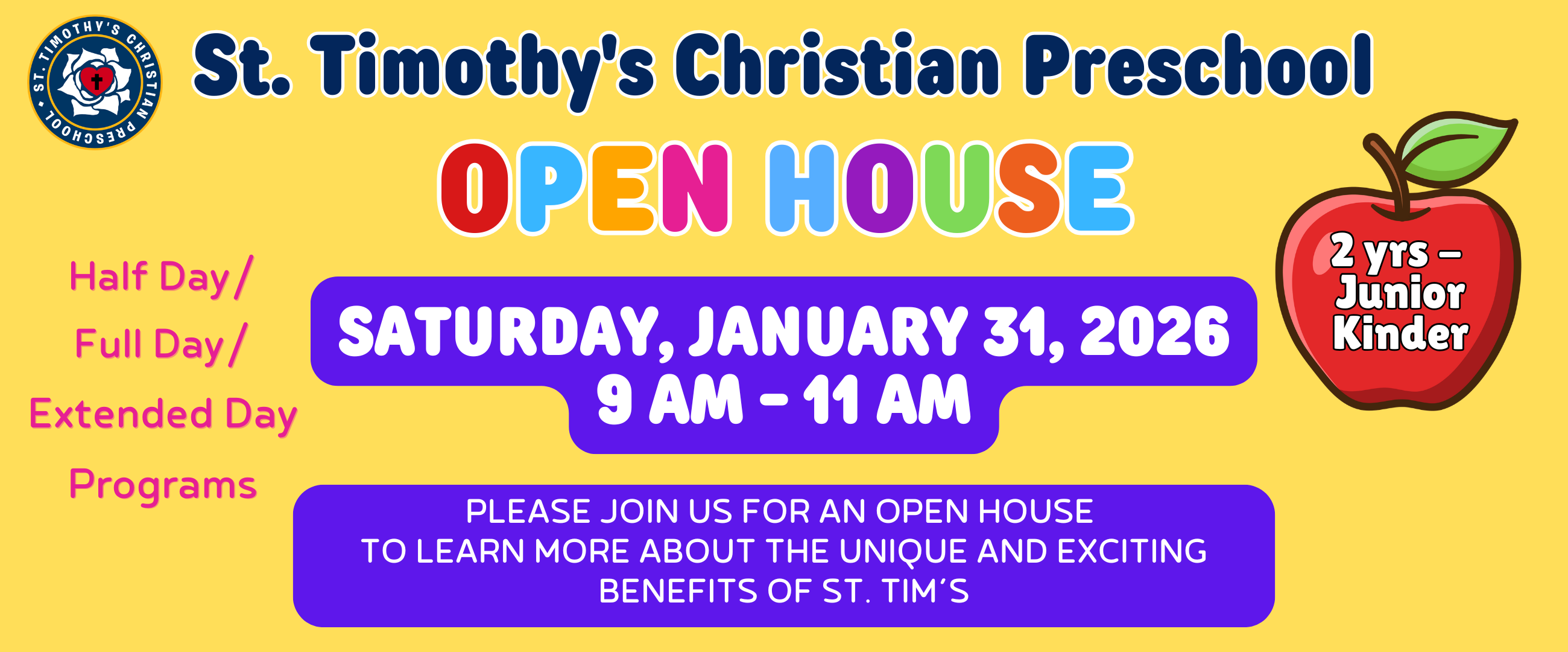St. Timothy’s Christian Preschool is a nurturing Christian preschool committed to fostering holistic development, grounded in love, faith and academic excellence, while empowering young hearts and minds to flourish in God’s light. At our preschool, we believe in providing a safe environment where every child is valued as a unique creation of God. We want to provide and encourage the development of a positive self-image and foster independence in each child. We want to encourage respect for self as well as for others. We want to provide opportunities to develop positive relationships with adults and help the children develop good health habits. Rooted in Christian principles, we strive to cultivate a love for learning, encourage spiritual growth and foster a sense of community. Through engaging experiences and meaningful relations, we aim to empower children to discover their God-given potential and embrace a life of love, kindness and service.